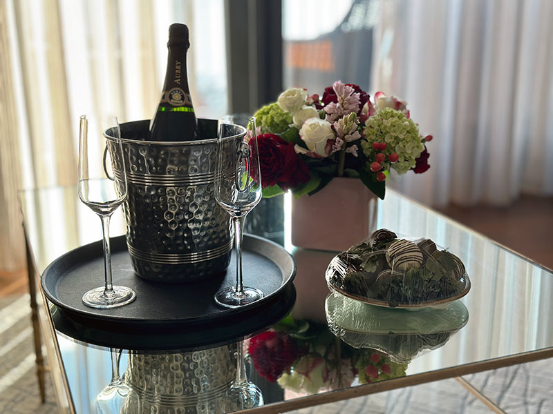 • In-room food & beverage closets with mini-fridge, microwave oven, Keurig coffee maker, & honor bar items;